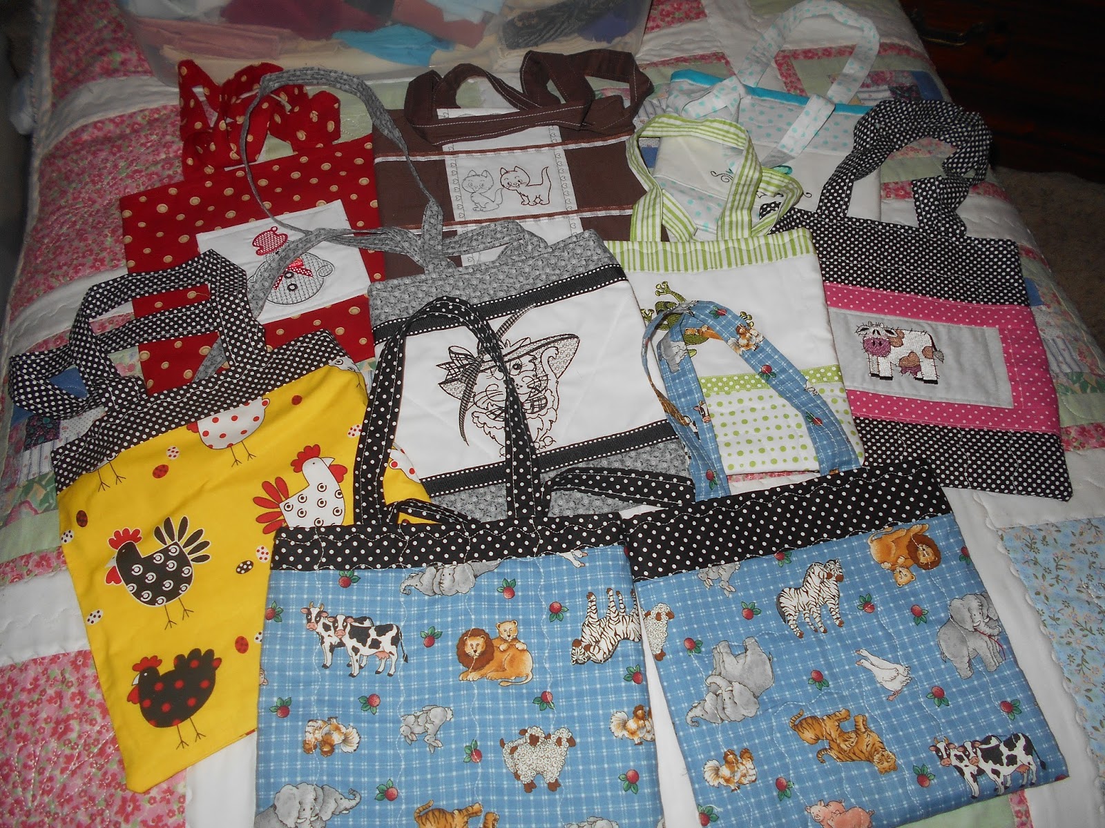 It has been since 2020 that I have posted anything so I have a few things to share. I have been sewing dog/cat quilts for the rescues, and there were around 7 that came to pick up my little quilts. I do a lot of paper and sewing arts for graymattersfoundation.org ... my friend Lanette who is the brain tumor support lady..I never seem to not be sewing, paper crafting, knit and crochet and just keep busy. Here are a few of my recent sewing projects... using Loralei fabrics is the best fun. I use even the smallest left over fabrics so you will see a lineup of keychains, lots of fun to make. The Hipster Bags are great, they carry cell phones and some extra little needs for those quick trips, cute little tote with an embroidery teddy bear. ...Whatever I am doing, creating...I am keeping busy at age 85 and loving it. Thanks for stepping by in case you found my blog again.