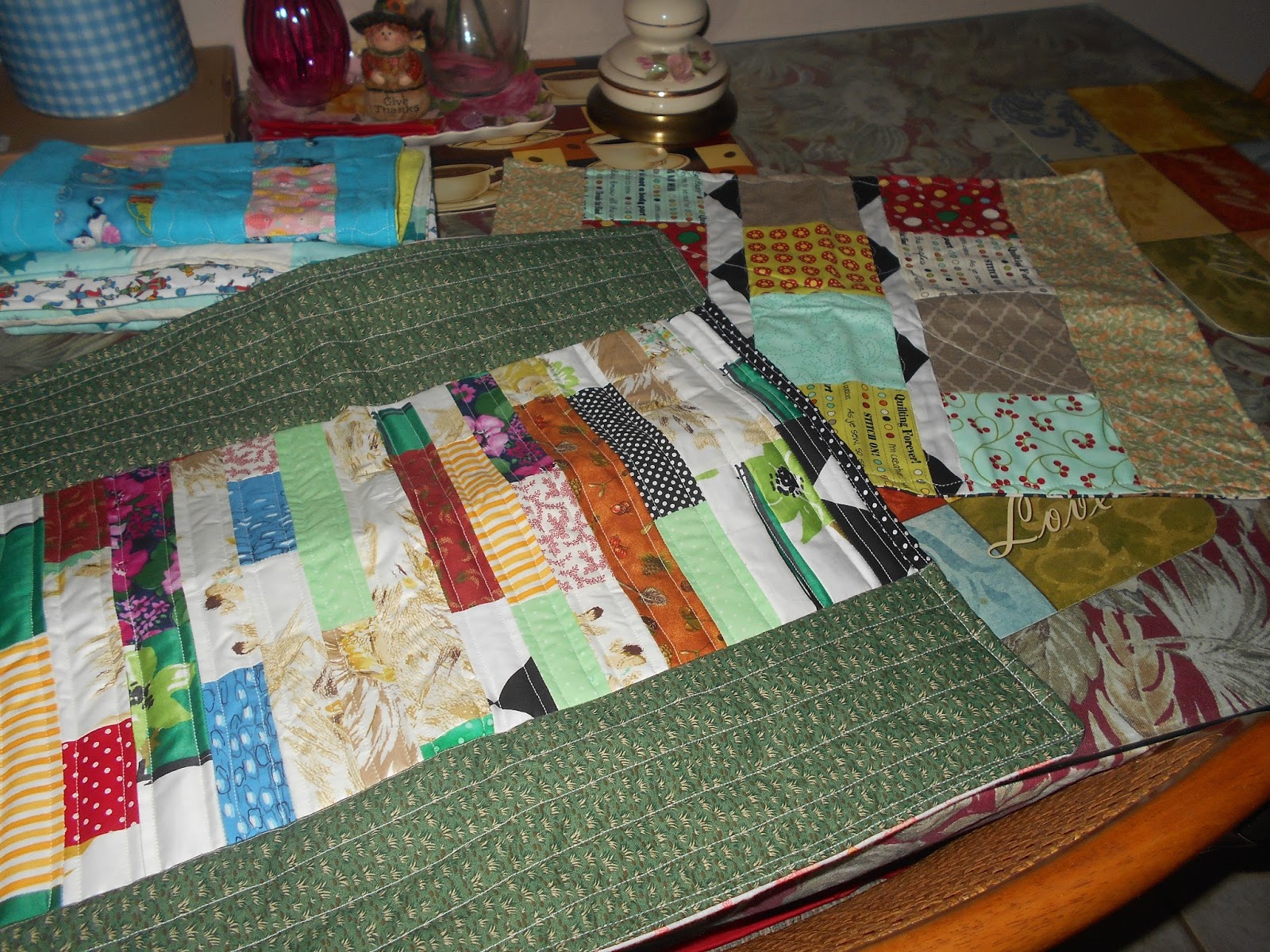 Happy Almost Christmas 2022. I have been so neglectful of my blog that I loved and used so much...mostly when I was very active on the design teams. Now I wing it, making cards by the dozens and sewing until the sewing machines say STOP. Here is a bundle of little gifties I made from a big batch of lovely fabrics a high school friend gave me. First up are several of the little velcro pouches..I do not toss even a small strip of fabrics so those are sewn into little place mats or coasters. The next photo... much loved seat belt covers. These really help to prevent that seat belt to annoy your neck. Also shown are some cross body bags (popular) and some zipper purses. Heavy photo load, sorry.